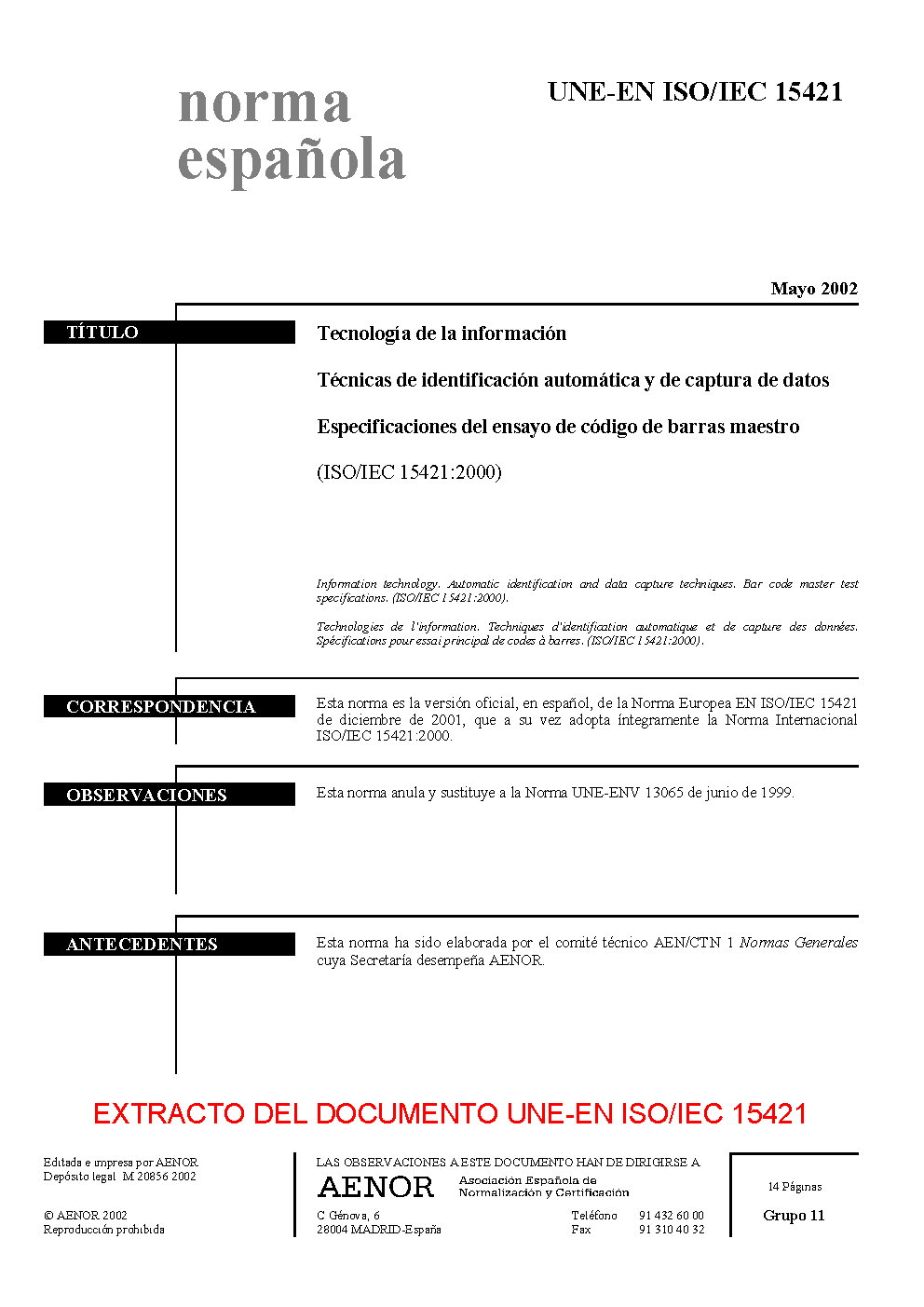 | Publisher | Asociacion Espanola de Normalizacion y Certificacion (AENOR) |