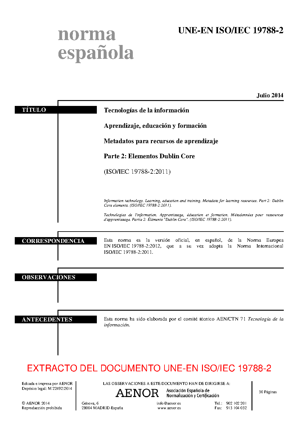 | Publisher | Asociacion Espanola de Normalizacion y Certificacion (AENOR) |