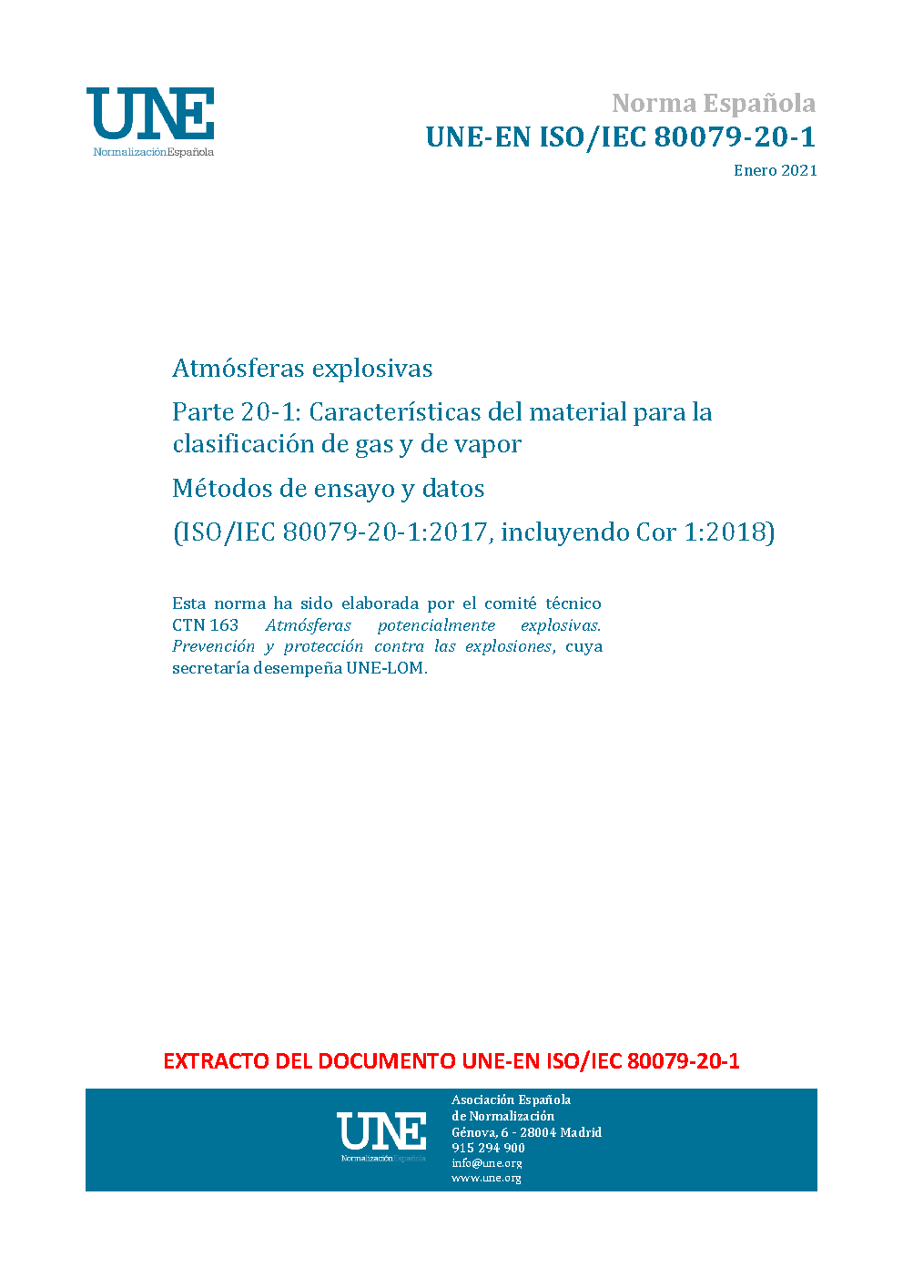 Explosive atmospheres - Part 20-1: Material characteristics for gas and vapour classification - Test methods and data (ISO/IEC 80079-20-1:2017, including Cor 1:2018)