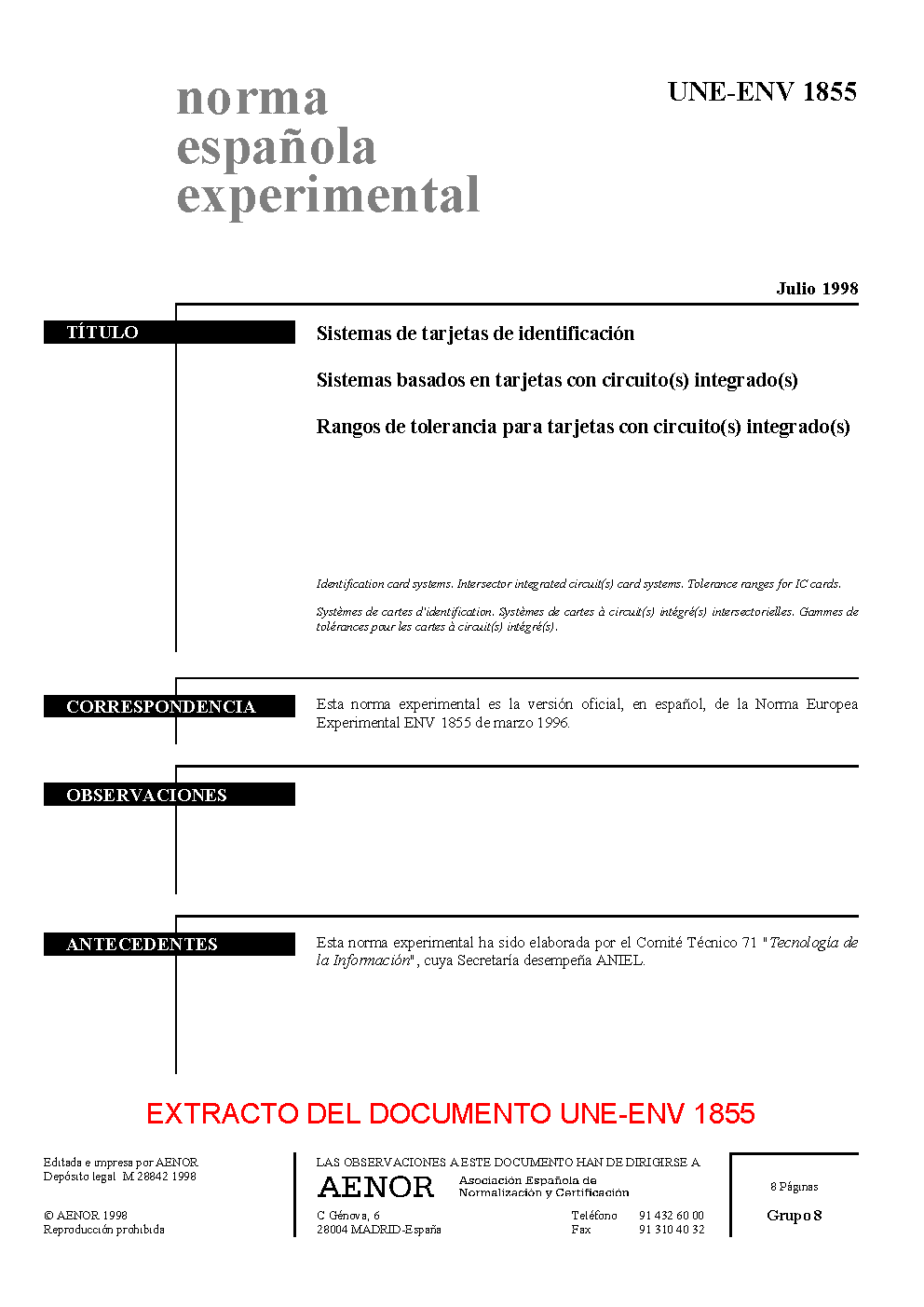 | Publisher | Asociacion Espanola de Normalizacion y Certificacion (AENOR) |