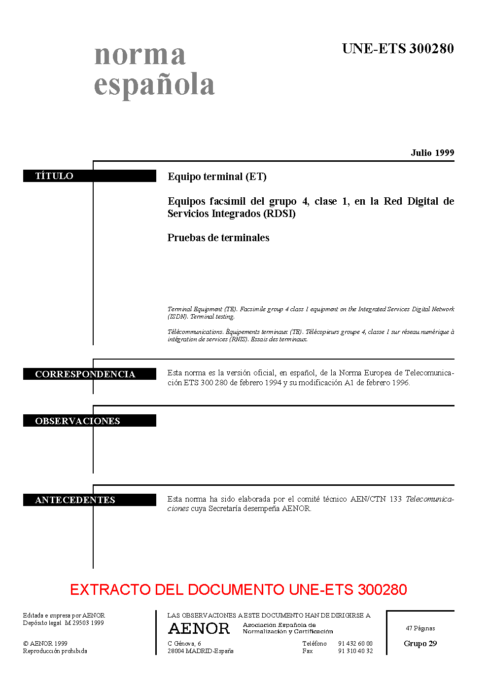 UNE-ETS 300280:1999