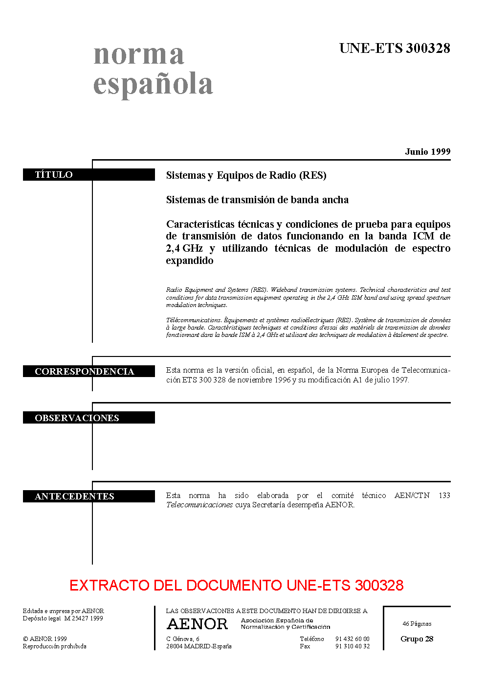 UNE-ETS 300328:1999