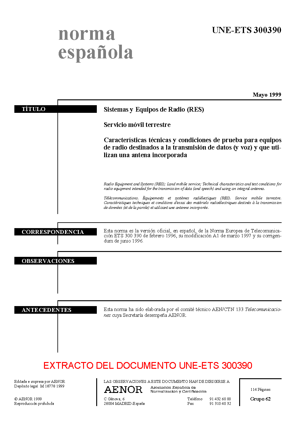 UNE-ETS 300390:1999
