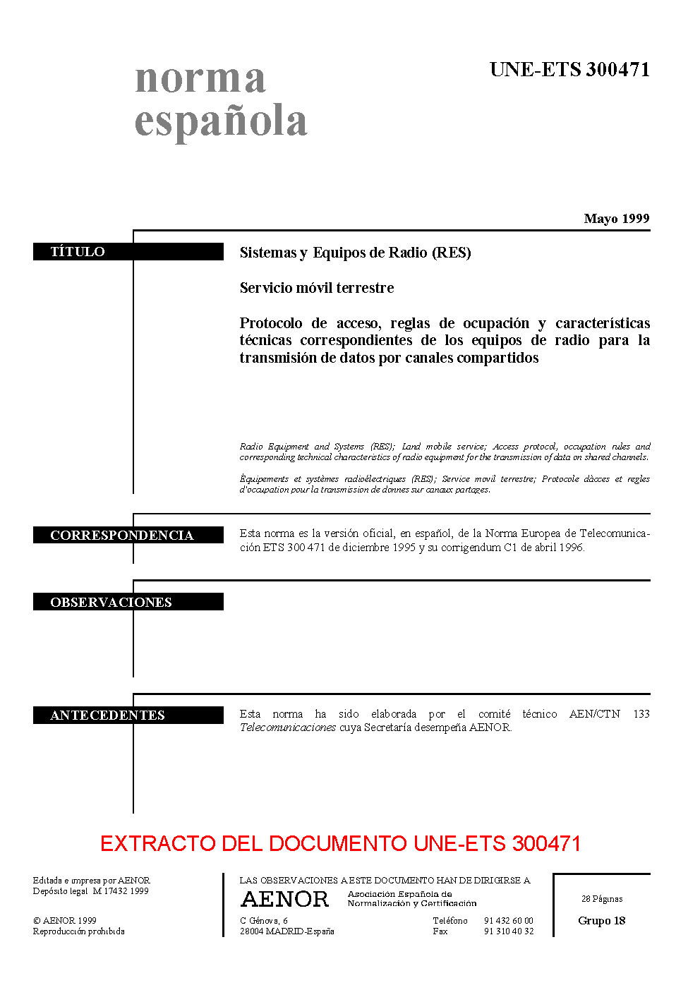 UNE-ETS 300471:1999