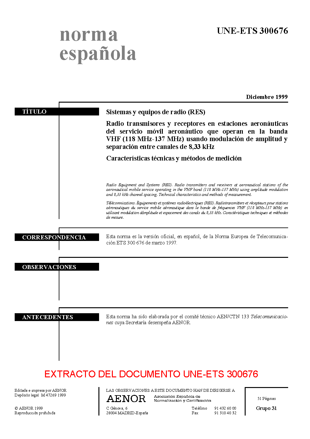 UNE-ETS 300676:1999