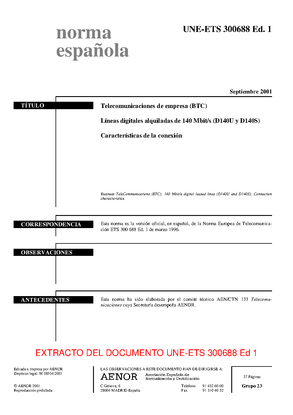 | Publisher | Asociacion Espanola de Normalizacion y Certificacion (AENOR) |