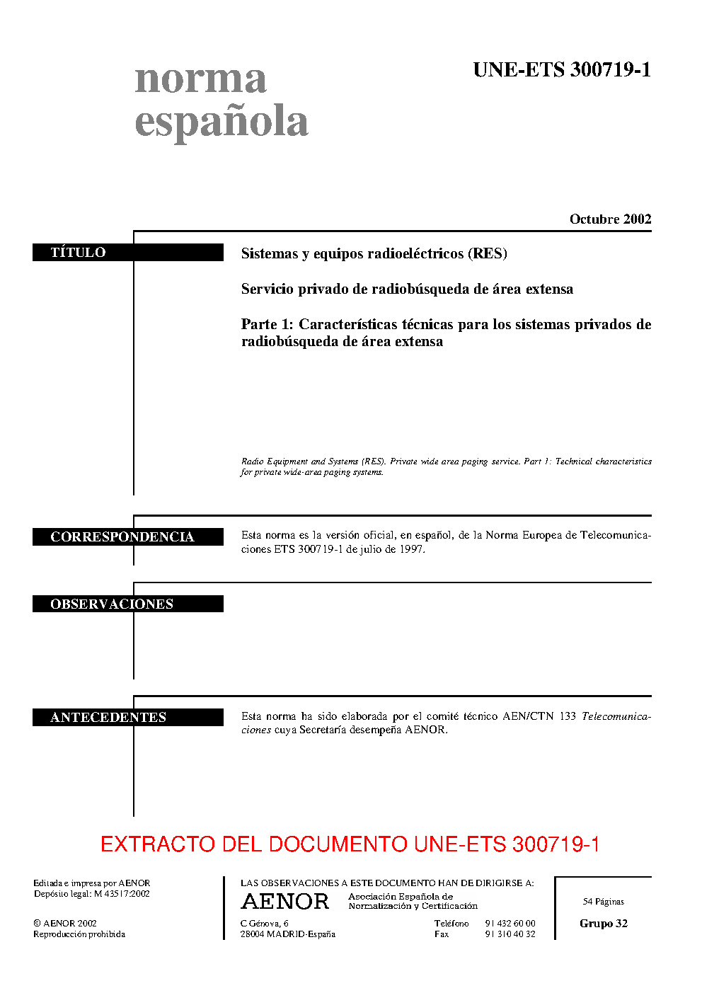 | Publisher | Asociacion Espanola de Normalizacion y Certificacion (AENOR) |