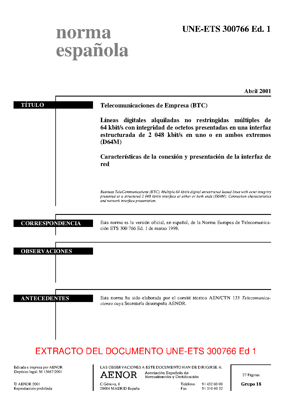 | Publisher | Asociacion Espanola de Normalizacion y Certificacion (AENOR) |