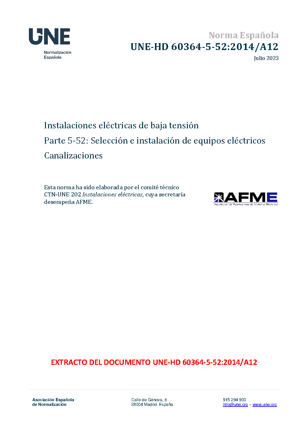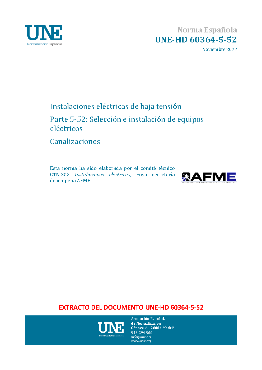 UNE-HD 60364-5-52:2014/A11:2018
