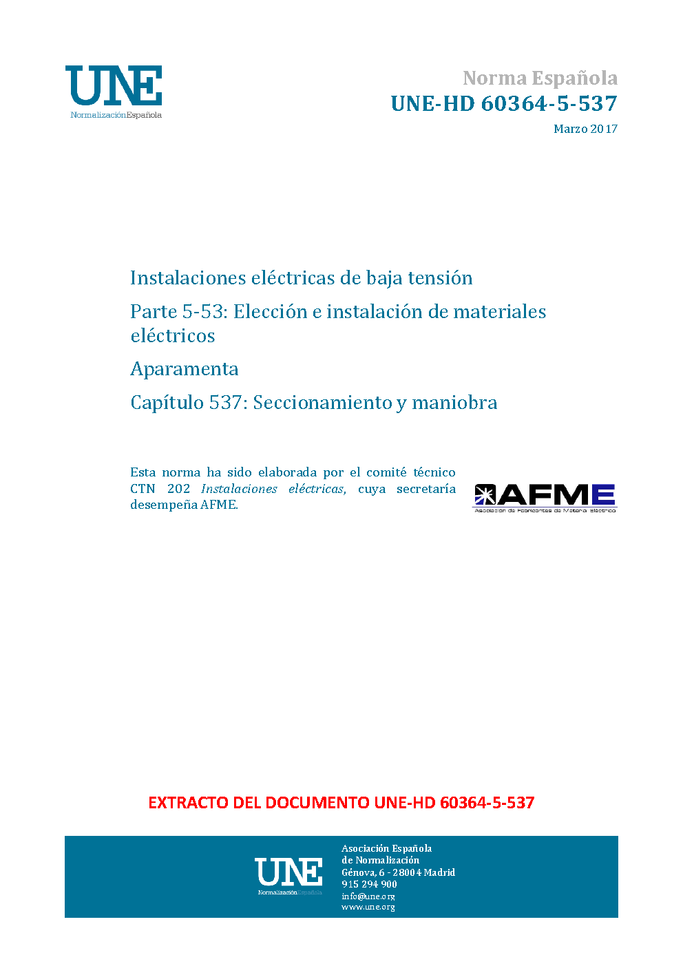 Low-voltage electrical installations - Part 5-53: Selection and erection of electrical equipment - Devices for protection, isolation, switching, control and monitoring - Clause 537: Isolation and switching