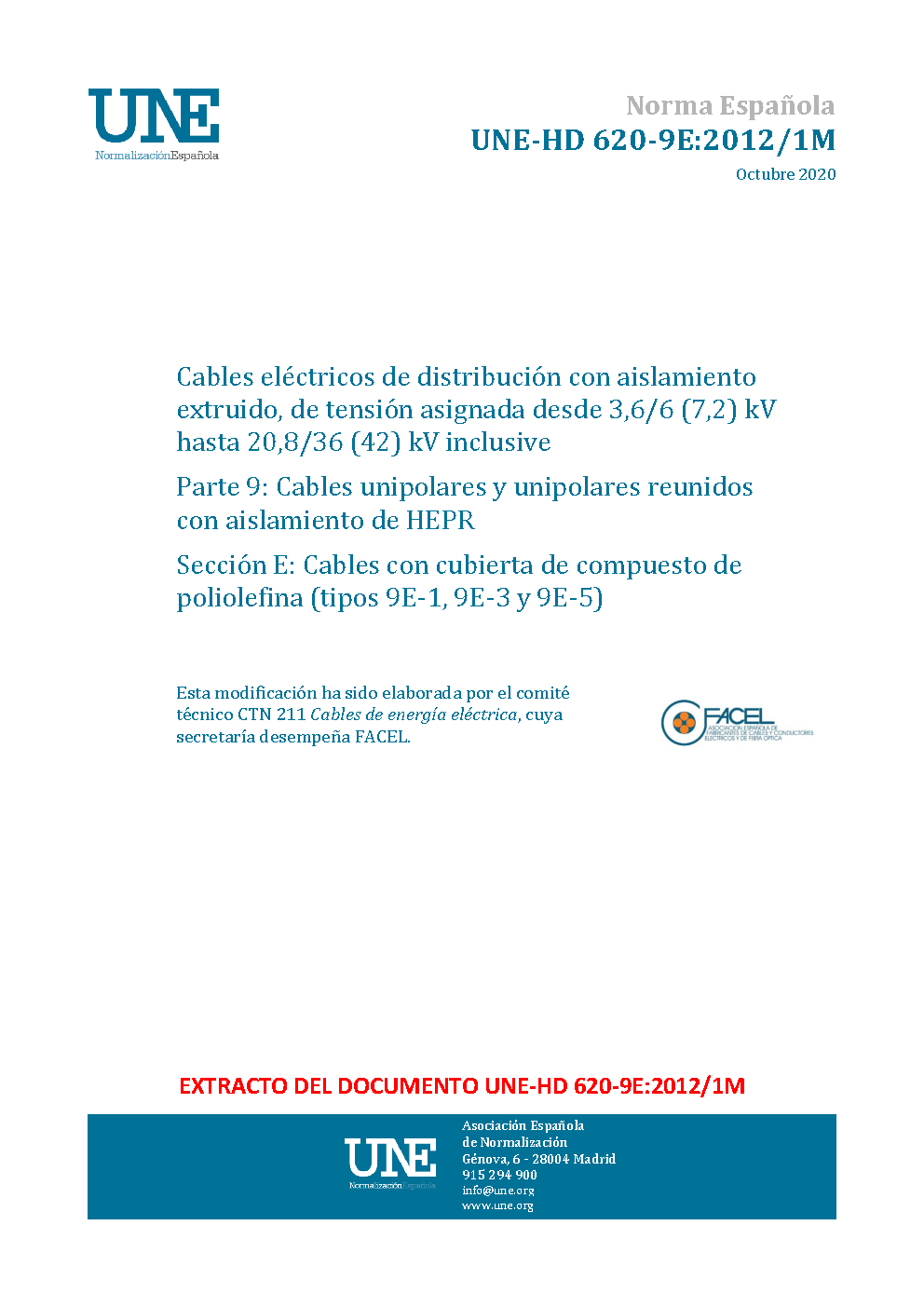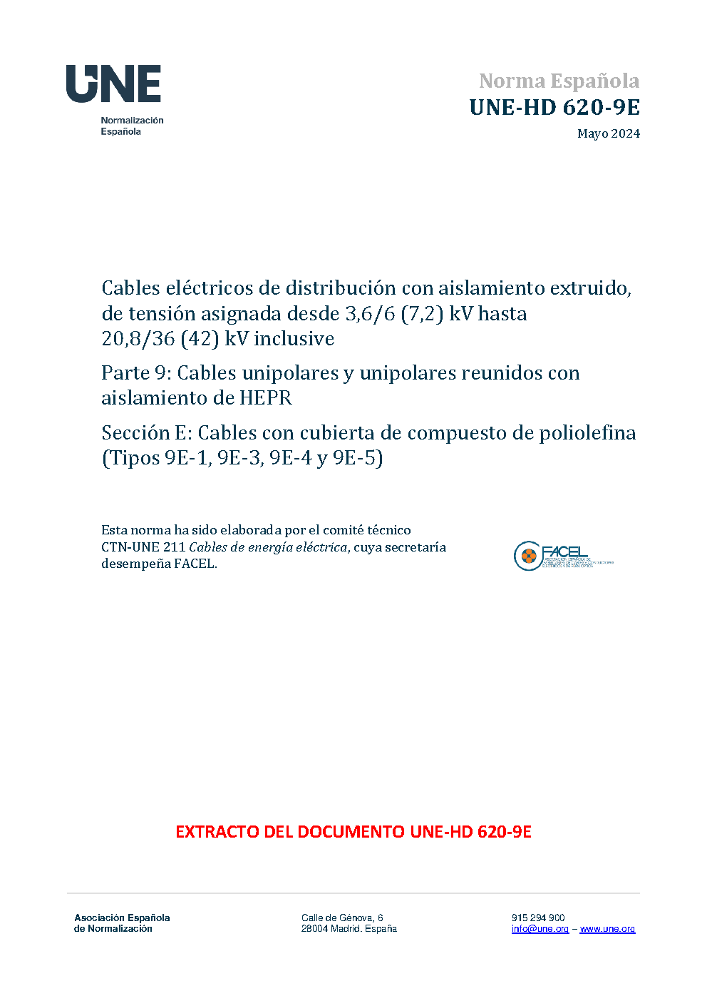 Distribution cables with extruded insulation for rated voltages from 3,6/6 (7,2) kV up to and including 20,8/36 (42) kV. Part 9: HEPR insulated single core cables, and single core pre-assembled cables. Section E: Cables with polyolefin compound sheath (types 9E-1, 9E-3, 9E-4 and 9E-5).