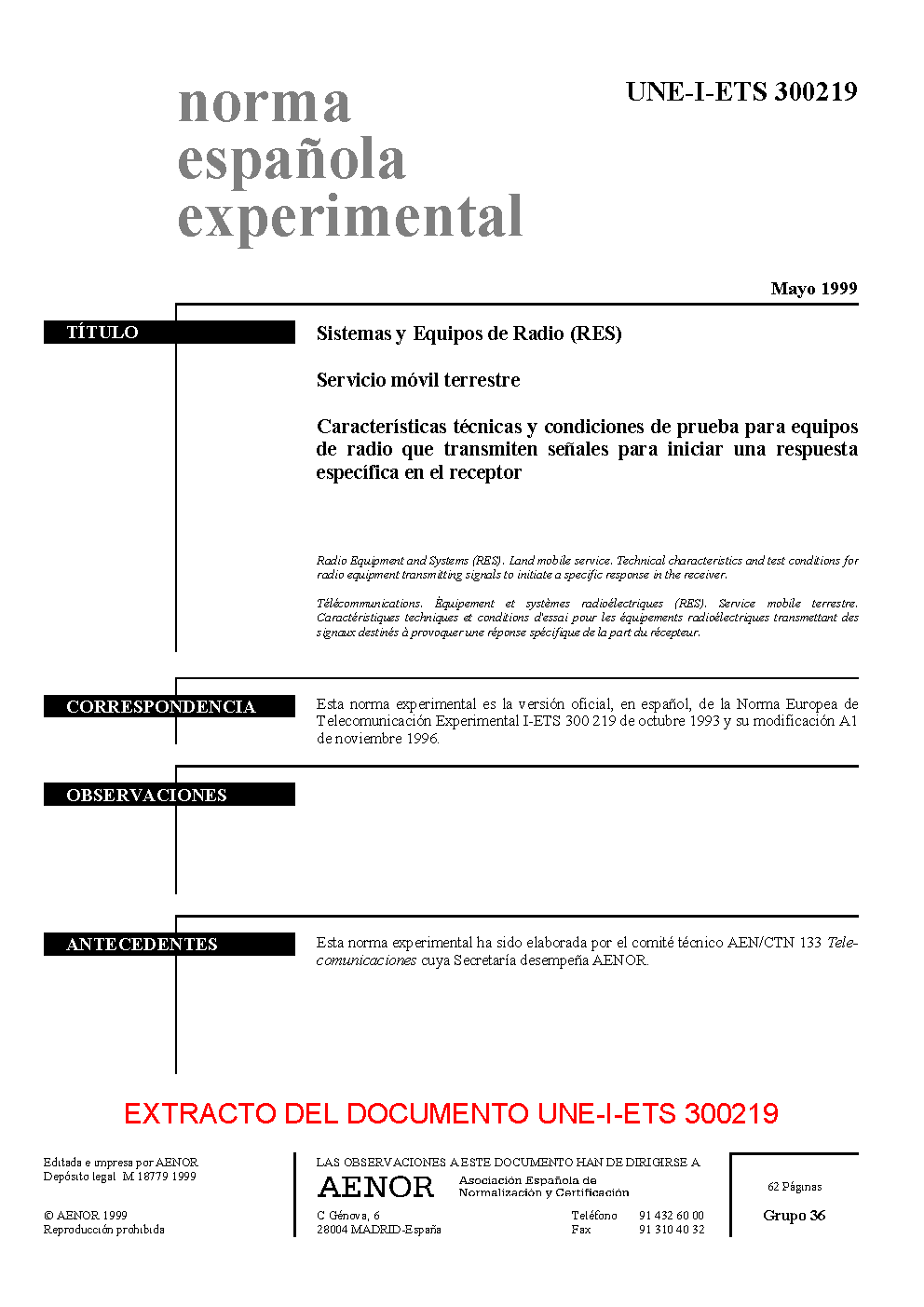 UNE-I-ETS 300219:1999