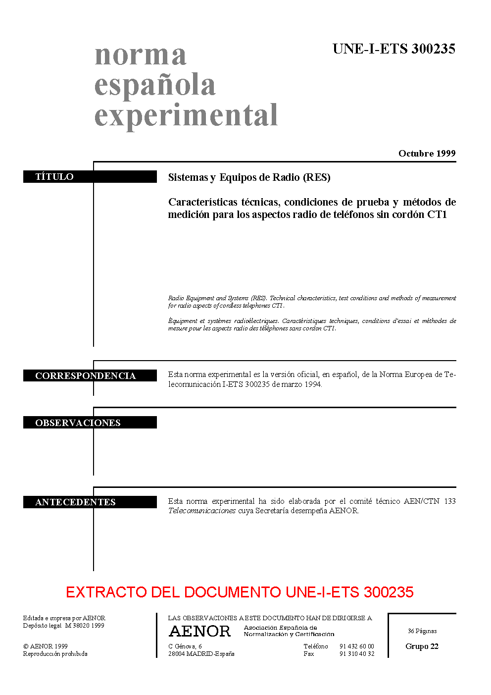 UNE-I-ETS 300235:1999