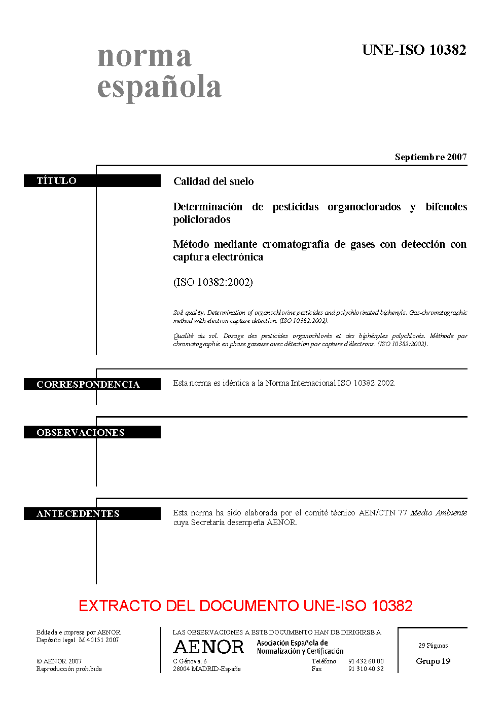 | Publisher | Asociacion Espanola de Normalizacion y Certificacion (AENOR) |
