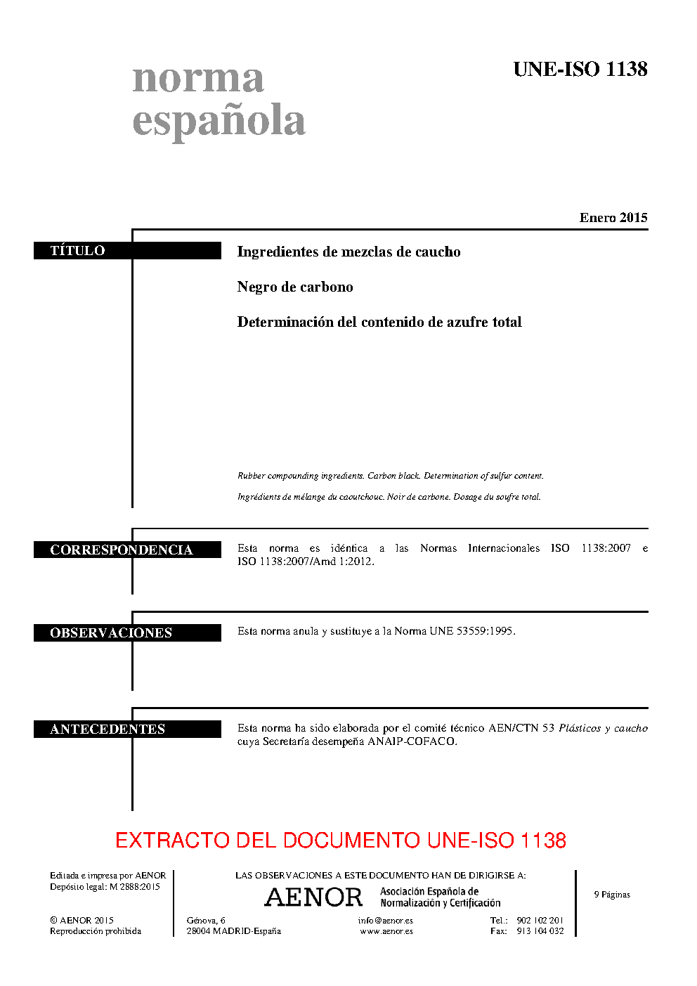 | Publisher | Asociacion Espanola de Normalizacion y Certificacion (AENOR) |