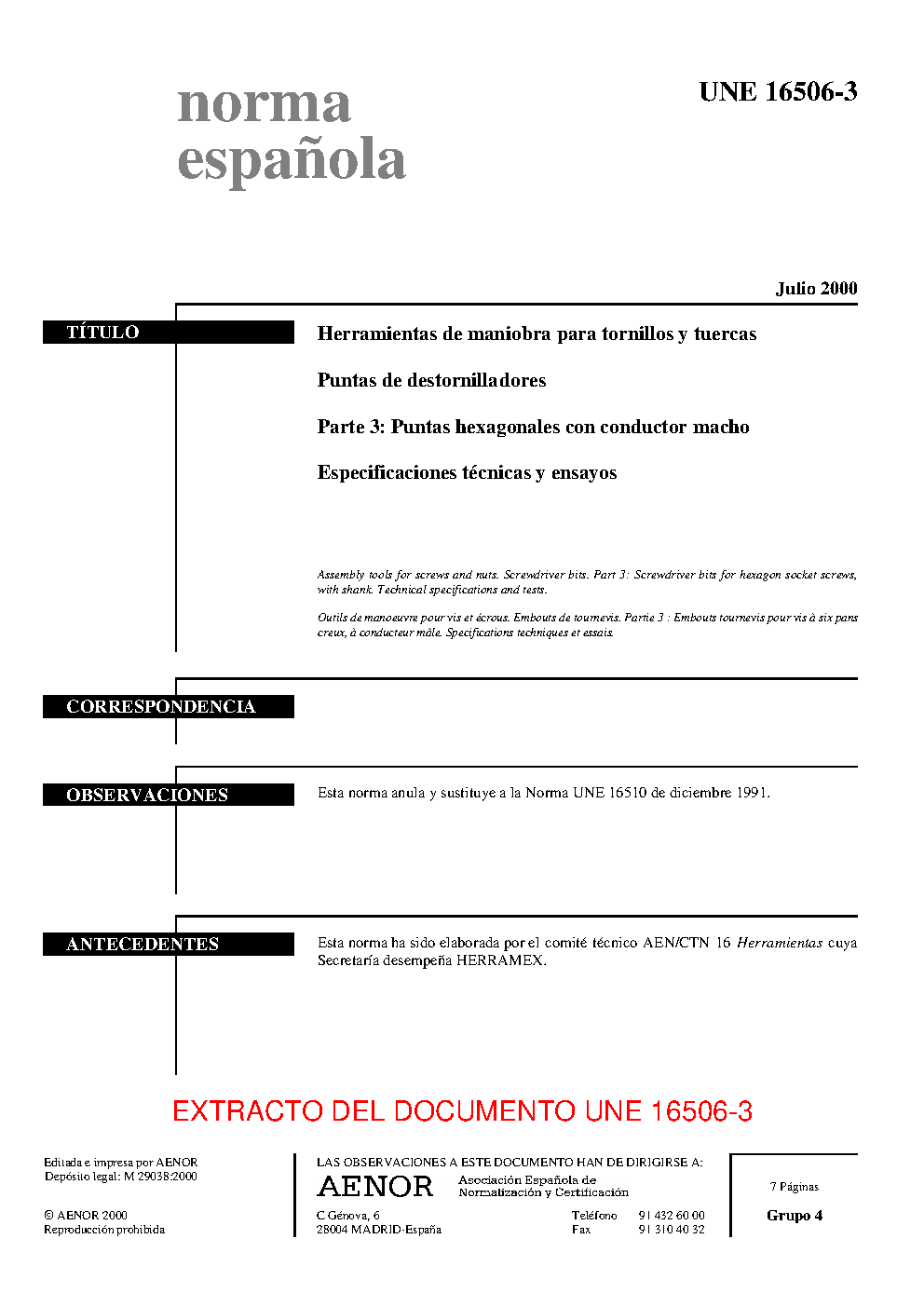 | Publisher | Asociacion Espanola de Normalizacion y Certificacion (AENOR) |