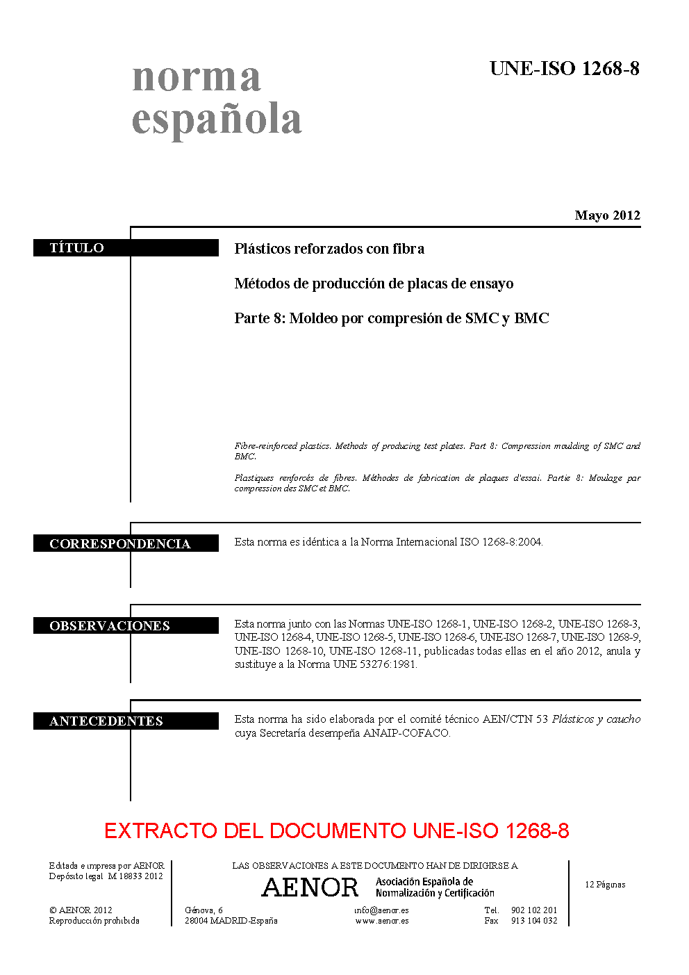 | Publisher | Asociacion Espanola de Normalizacion y Certificacion (AENOR) |