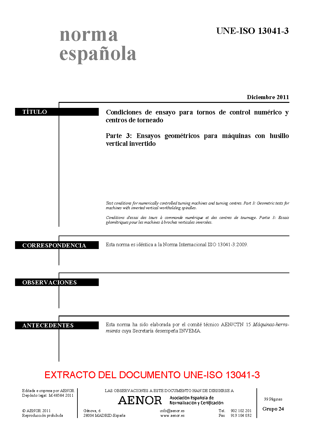 | Publisher | Asociacion Espanola de Normalizacion y Certificacion (AENOR) |