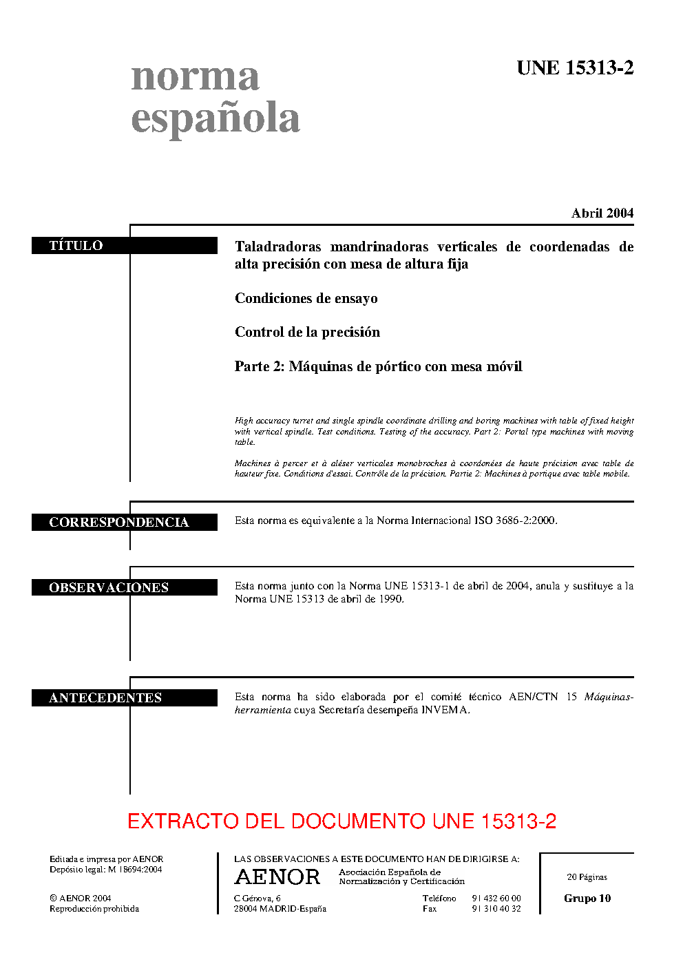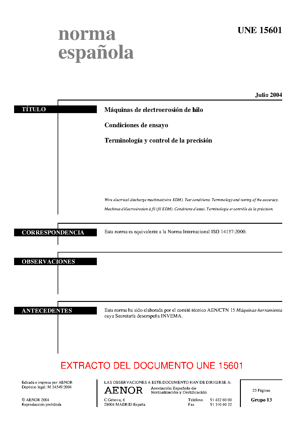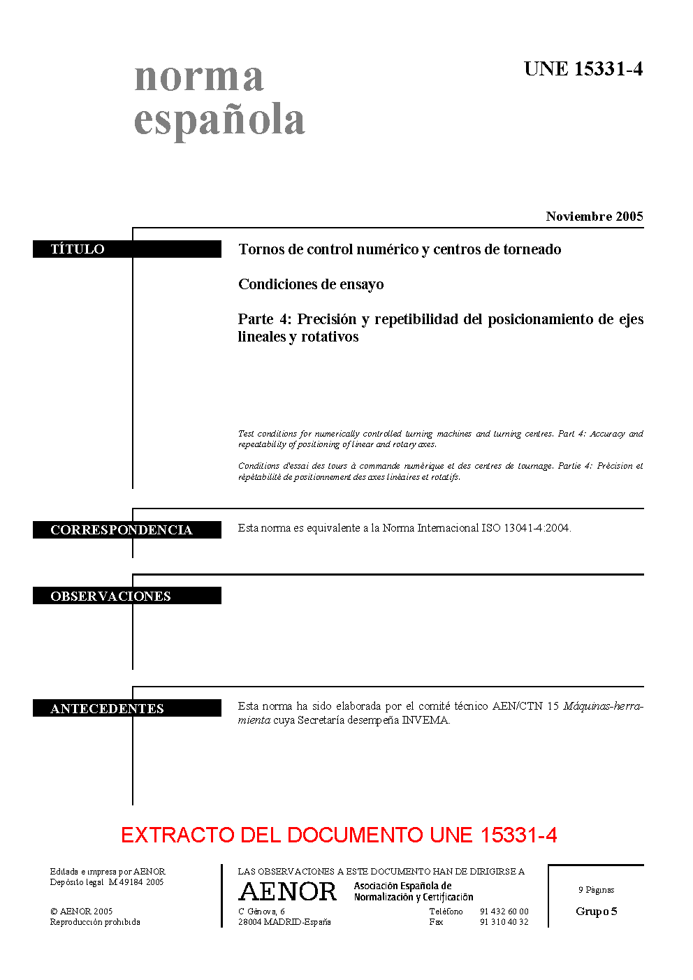 | Publisher | Asociacion Espanola de Normalizacion y Certificacion (AENOR) |