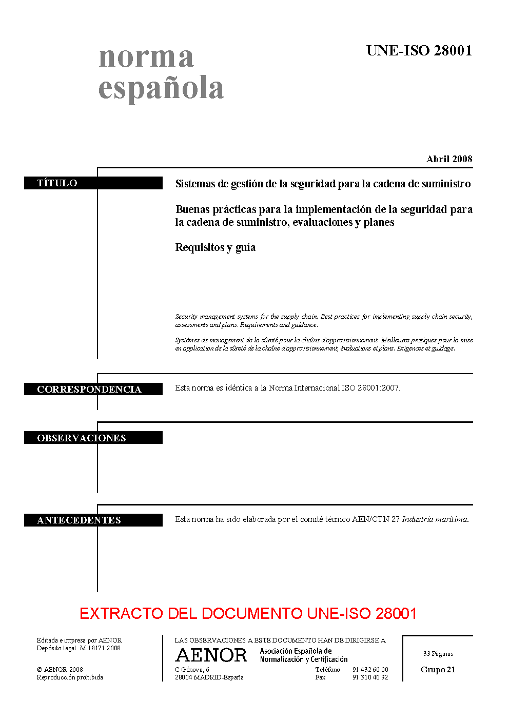 | Publisher | Asociacion Espanola de Normalizacion y Certificacion (AENOR) |