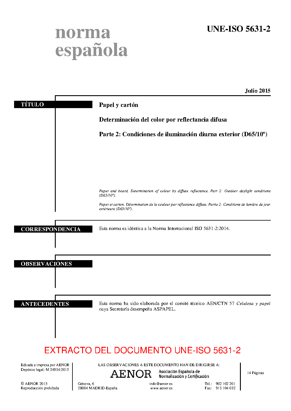 | Publisher | Asociacion Espanola de Normalizacion y Certificacion (AENOR) |