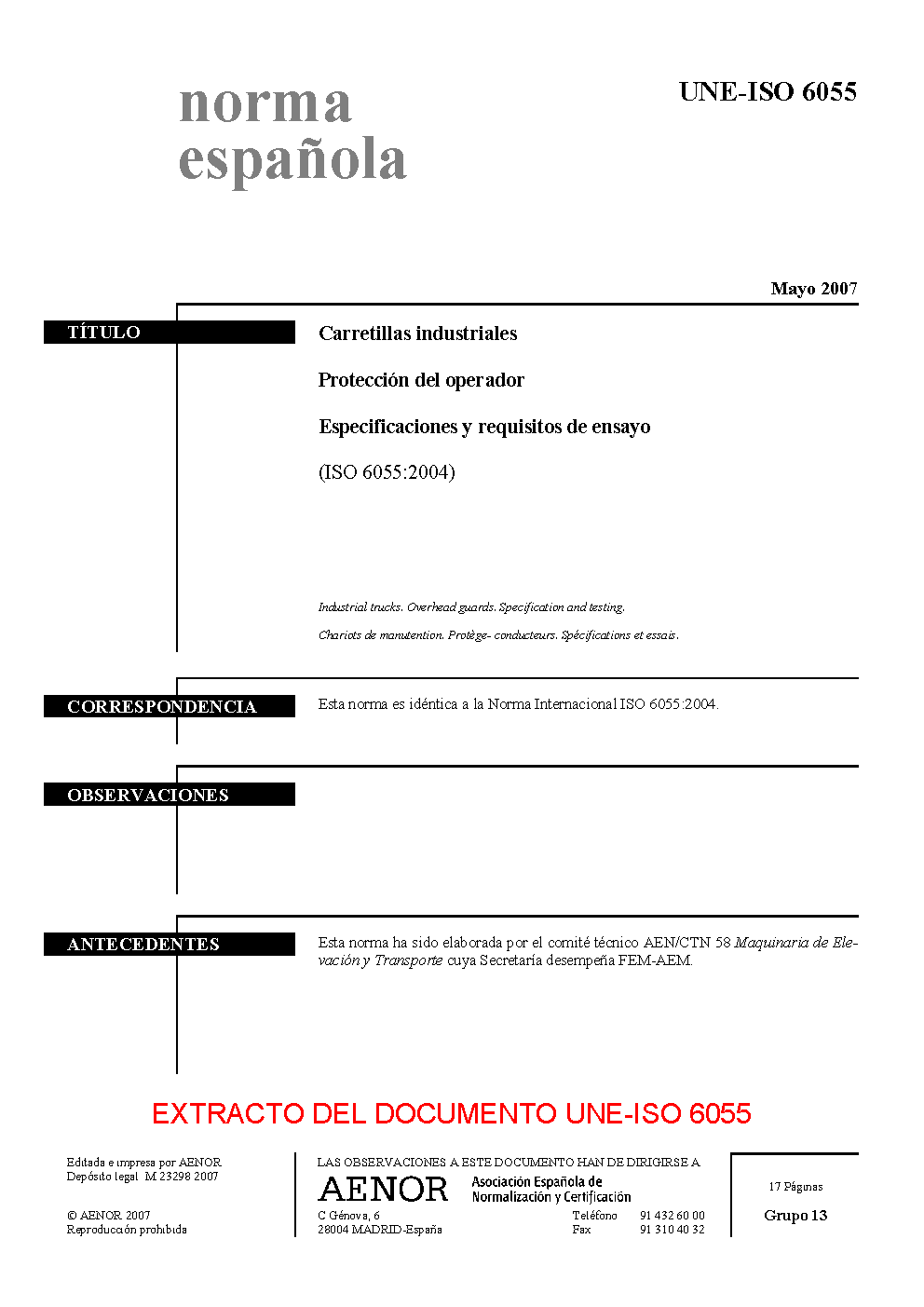 UNE-ISO 6055:2007