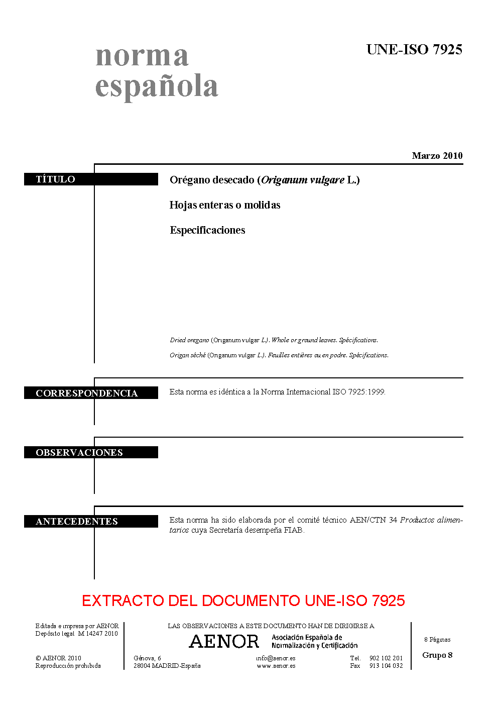 | Publisher | Asociacion Espanola de Normalizacion y Certificacion (AENOR) |