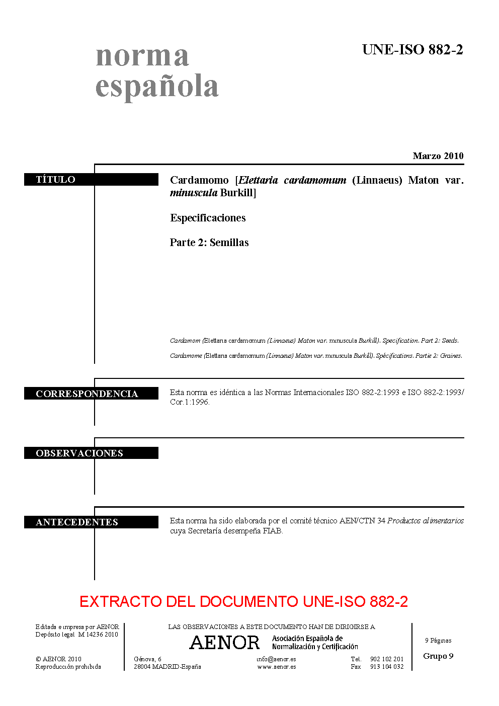 | Publisher | Asociacion Espanola de Normalizacion y Certificacion (AENOR) |
