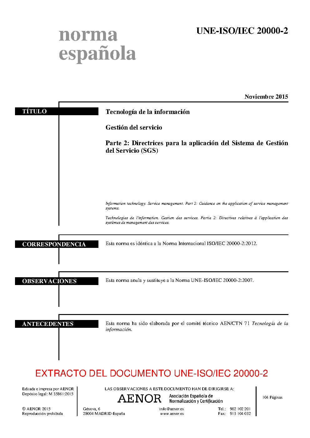 | Publisher | Asociacion Espanola de Normalizacion y Certificacion (AENOR) |