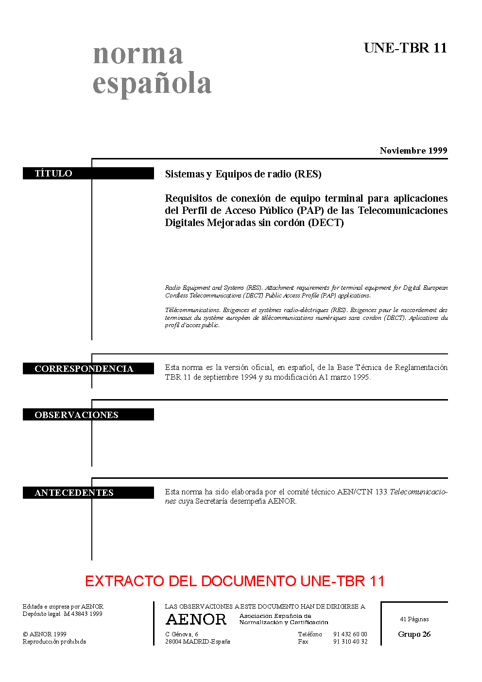 | Publisher | Asociacion Espanola de Normalizacion y Certificacion (AENOR) |