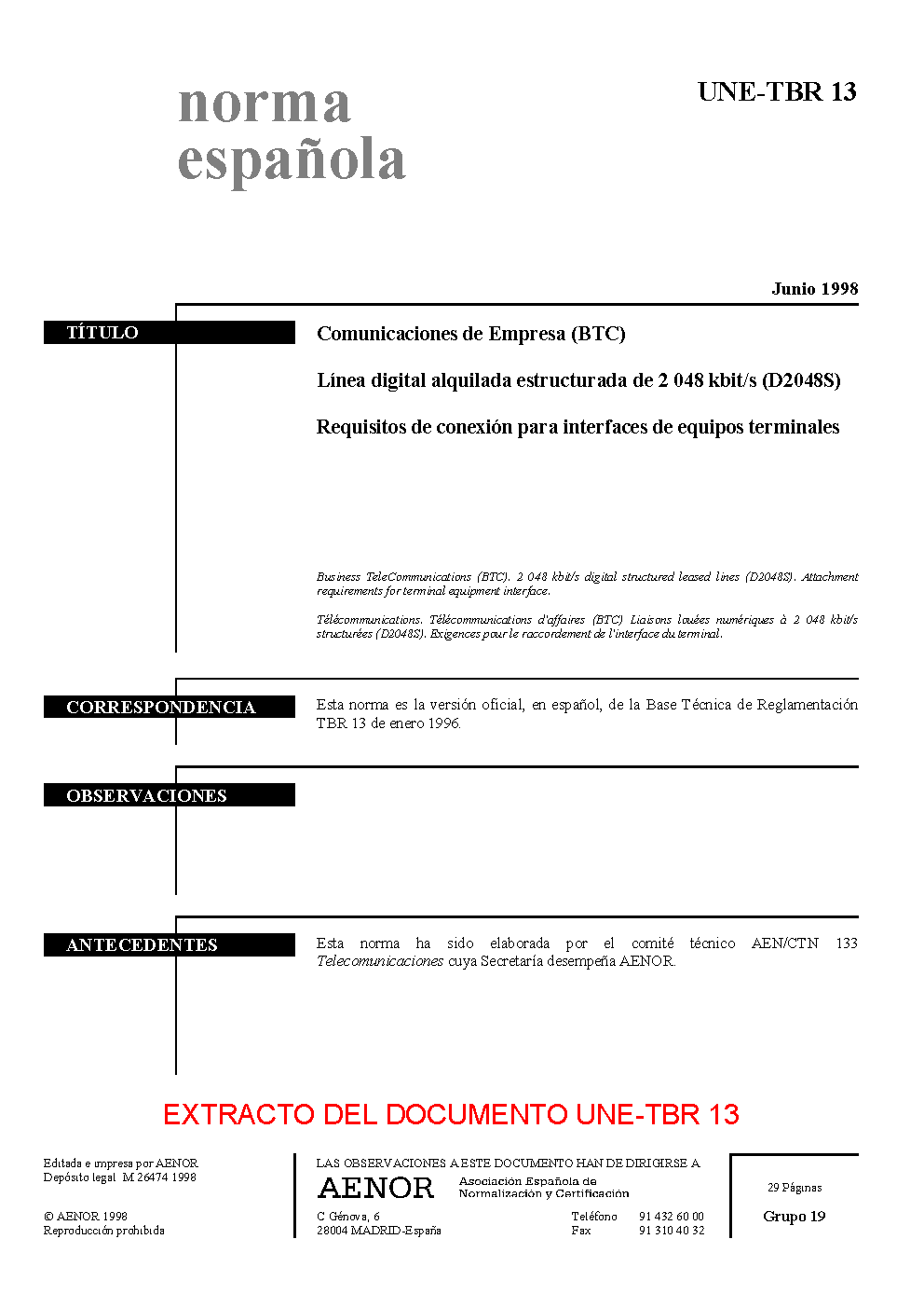 UNE-TBR 13:1998
