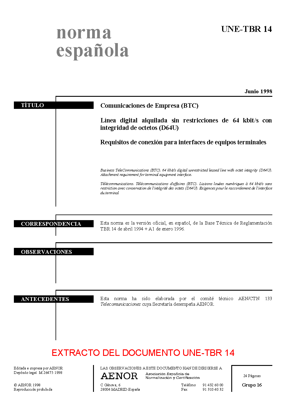 UNE-TBR 14:1998