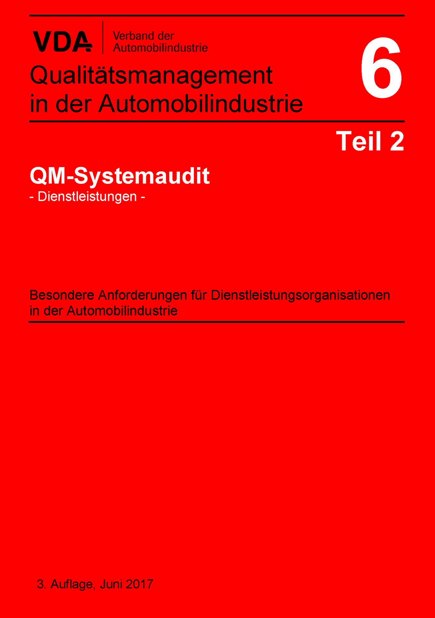 VDA Band 6 Teil 2 „QM-Systemaudit Dienstleistungen“ richtet sich deshalb an Dienstleistungsorganisationen, die ein Qualitätsmanagementsystem nach diesem QM-Systemstandard einrichten und zertifizieren lassen wollen.